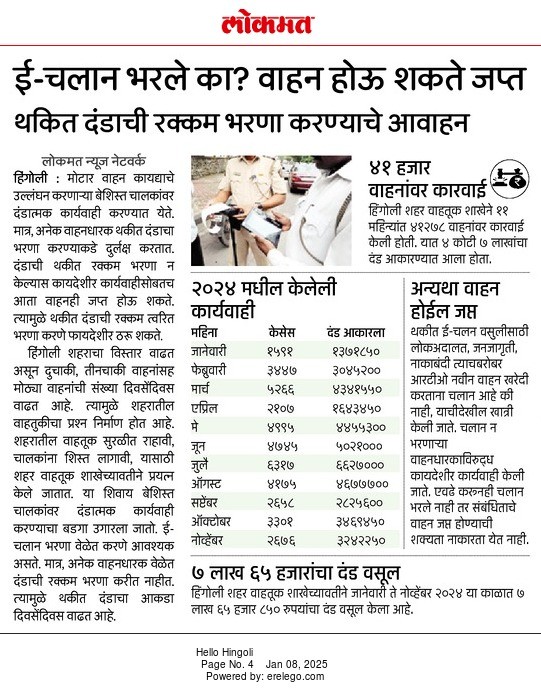 नागरिकांना सुचित करण्यात येते की आपल्या वाहनावर झालेले ई-चलन भरावे.